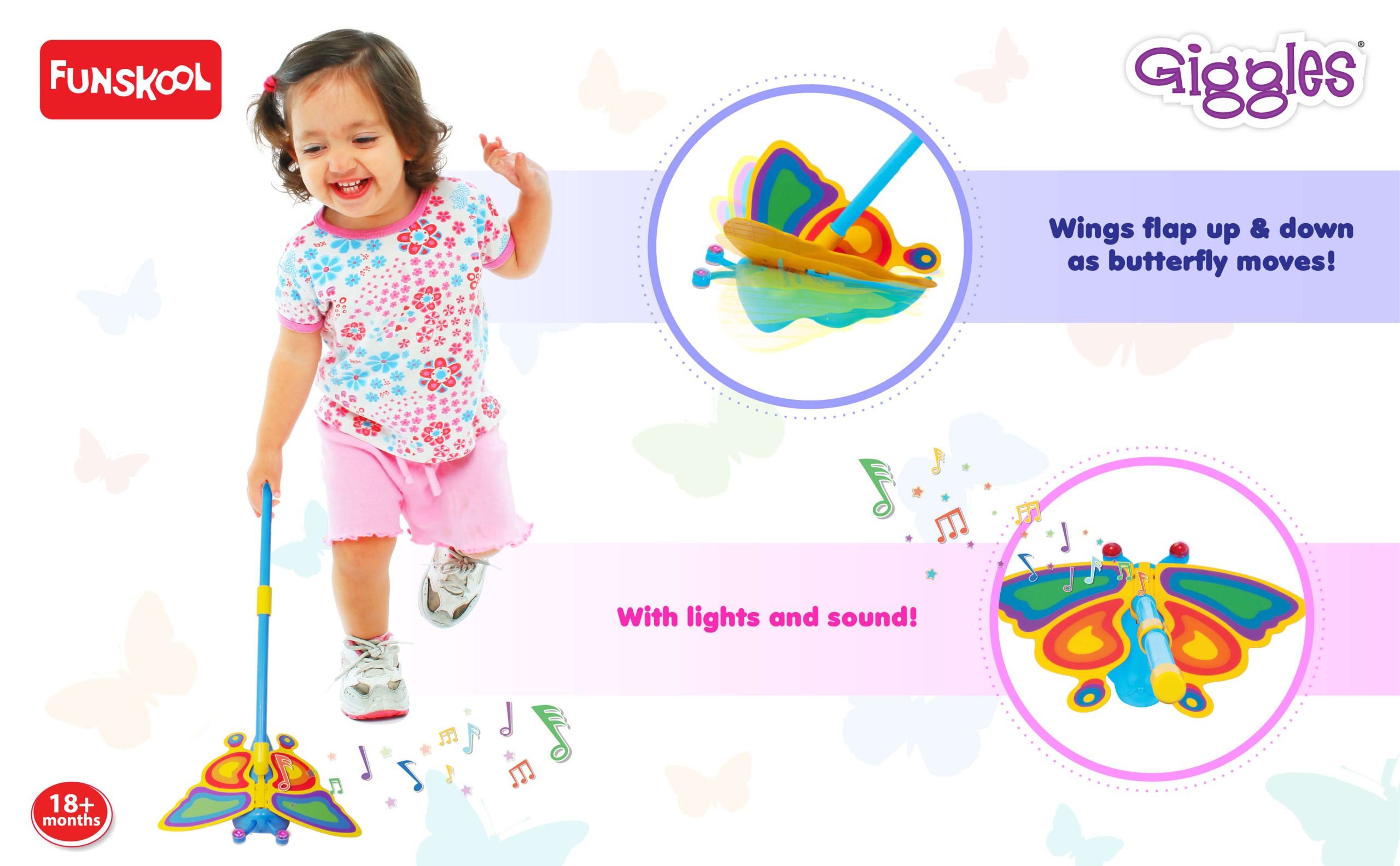 A cute and colorful butterfly toy designed to engage toddlers with fun movements and bright visuals. Helps develop motor skills, hand-eye coordination, and sensory learning while keeping kids happily entertained.