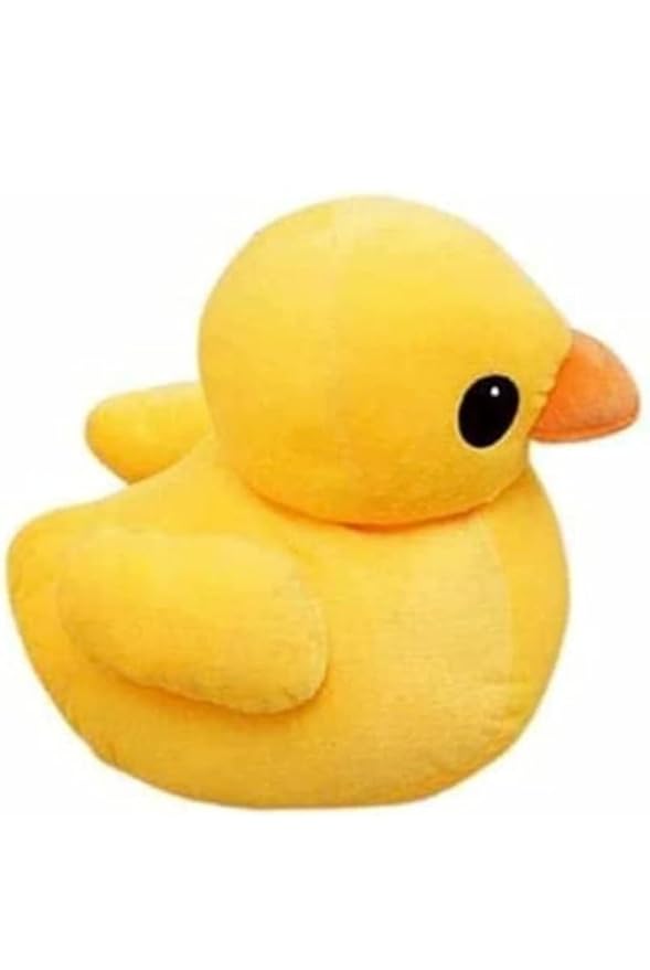 Bright yellow duck with a funny expression and colorful features that kids will love.